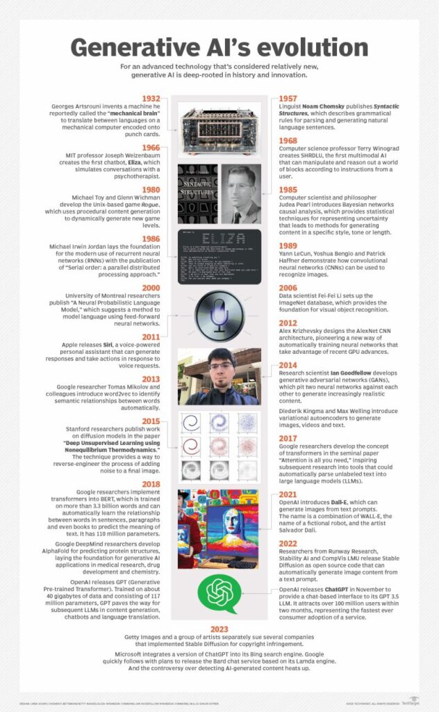 The following visual gives a timeline of how generative AI has evolved over time.